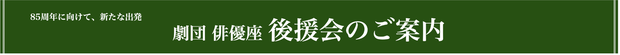 更にこの先の85周年へ向けて、劇団俳優座では、私たちの活動を支えて下さる後援会の会員様を募集しております。未来への歩みを止めず邁進してまいりますので、劇団員一同、皆様のご入会を心よりお待ちしております。